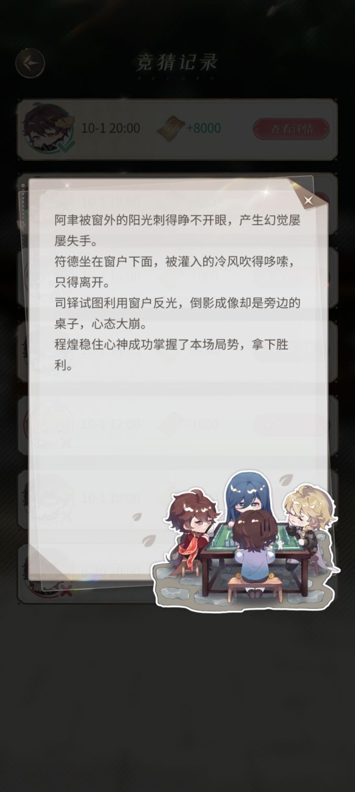 昨天吐槽了一阵子之后反而还赢了几局,放赢了几个小片段,出来乐呵乐呵。茶馆这个还是个概率问题,大家每天前几次的时候就是最好还是压1000吧。我在微博上看的说是有个概率问题,放一下。