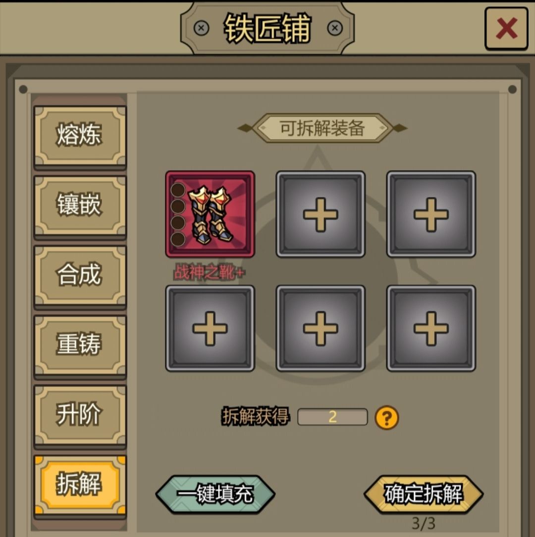 如图,每天用好三次免费拆解就ok啦,从入坑就要积累碎片,这个东西后期很缺。