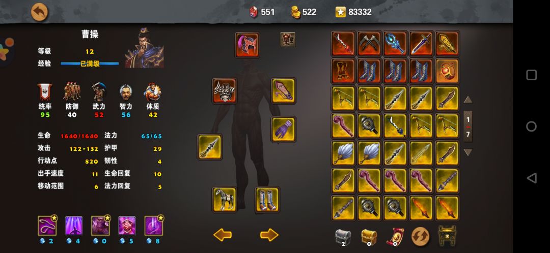 曹操:狼牙枪、兵仙头、愤怒甲、祥云鞋、黑王马、飞鹰令