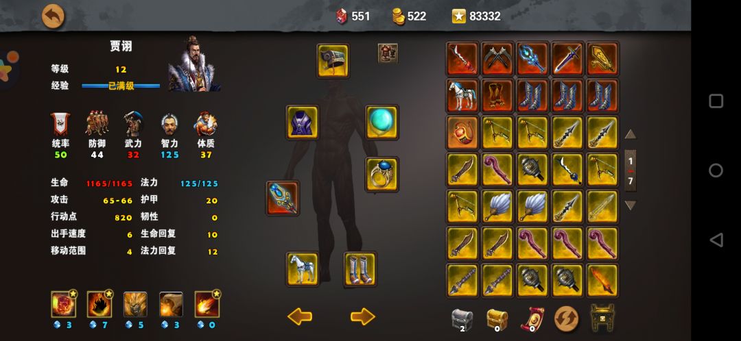 贾诩:九天惊雷仗、天罗头、清风衣、夜明珠、雷鸣指环、寒风马、祥云鞋