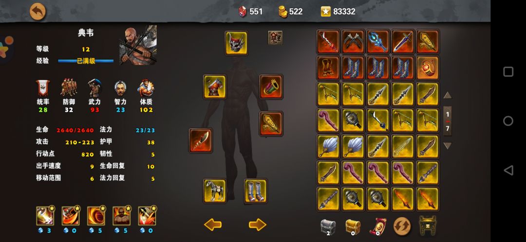 典韦:黄龙刀、蛮皮衣、血牙头、龙腕、神鹰令、祥云鞋、黑王马