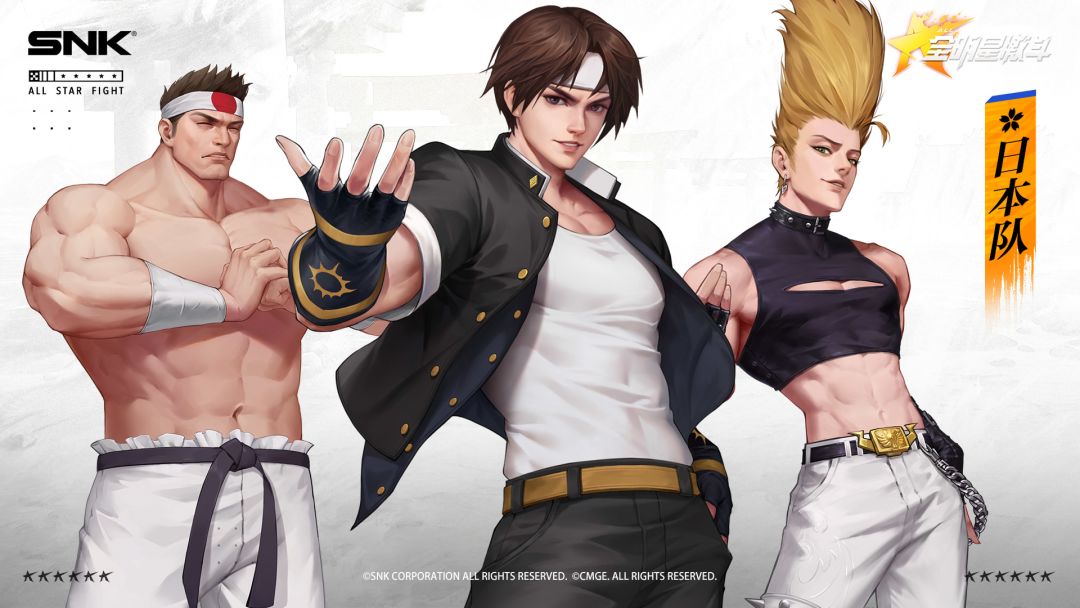 如果要问SNK系列作品中实力最强的队伍是哪队,这贝尔还真有点纠结,日本队不必说,有草薙京坐阵,另外两位一个大门五郎,强行闯入五强行列,犹如BUG一般的存在,一个红丸,能力特殊,在好感度系统加持下看到女性角色就能加能量,大家别笑,这对游戏战斗的影响也是很大哒!(<(`^´)>叉腰)而在《全明星激斗》中,三人也依旧是完美拍档,共同出战时,可触发【连携之力】,增加抗暴率,获得连携护盾,再搭配几位攻击型角色,利用灼烧真伤的特性,快速成型,又是一只坚不可摧的队伍!