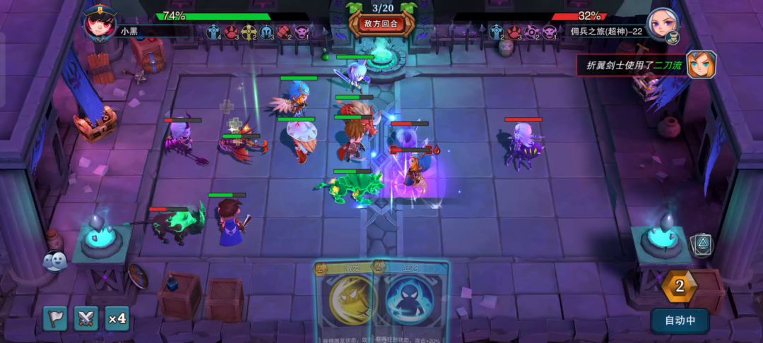 超神难度没什么好说的,打法基本一样,就是一点,白嫖能升3就升3,稳定,输出高打的也快了,有时候运气差阵容差很多,就赶紧改手动,别翻车了,我有一次20关都没见到猫剑折翼,21、22、23自动战斗三轮直接掉死😂