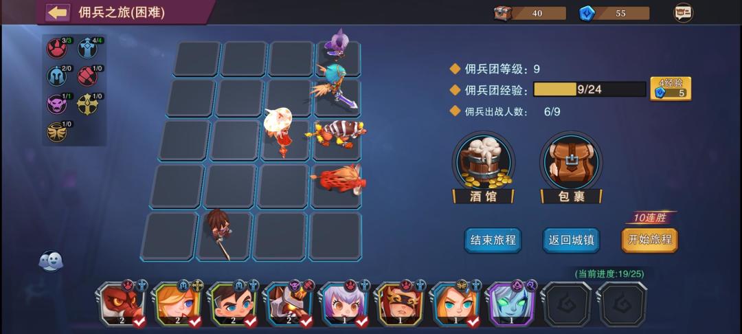 工具人方面,凤凰就是锦上添花的,没有刷到用野猪,民兵剑推荐宿命拉满,不亏的,佣兵之旅常客,野猪和地狱犬看着来,我野猪2级宿命,地狱犬一开始也没升宿命,后来发现他输出也不差,我就把他宿命拉满了。简单和普通以下第五关随便过。困难难度如果练度不太够的话,开局优先找小眼球或者民兵牧师,找不到就找野猪(撞墙额外伤害)、村民(沉默)、民兵战士(肉)、民兵剑士(又肉又能打)、等高质量卡牌,肉站左边,刺客会跳过去,让肉抗。输出站右面。