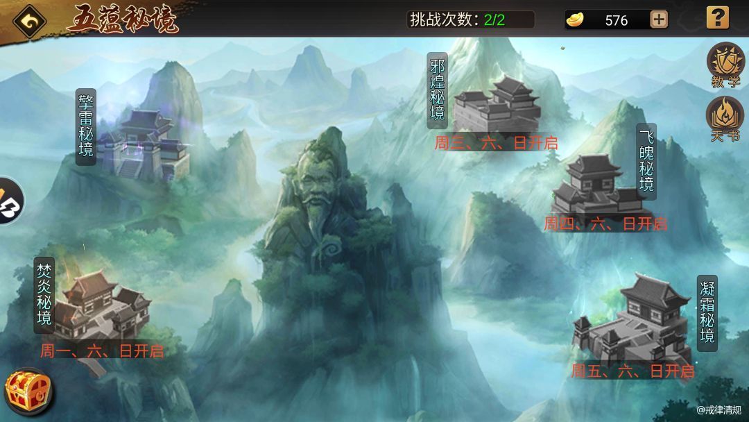 游戏中的版块内容都有对应的产出副本或途径,也构筑了别具一格的PVE玩法。天书系统的推出,官方也极为贴心,一并推出了副本新玩法:五蕴秘境,也是普通玩家天书取材最重要的途径。玩家通过挑战周一到周五轮流开放和周末全线开放的五大秘境副本,可以源源不断的获取天书碎片以及养成材料。