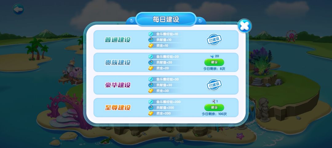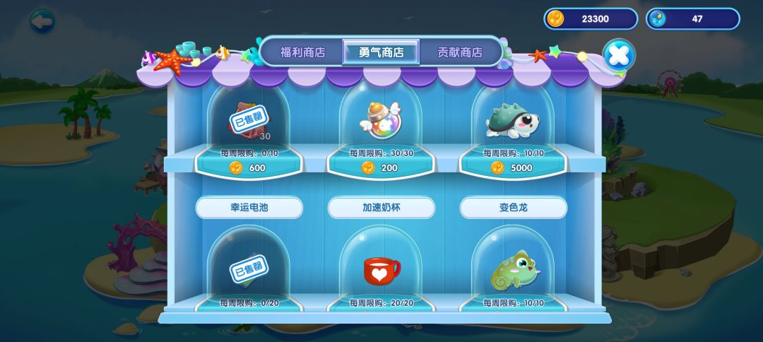 ③贡献商店:8小时鱼食,电池,遗忘药水高级幸运符大象的礼物🎁按自己需要购买!前期推荐买高级幸运符和8小时鱼食!先把宠物出游的化石岛解锁!