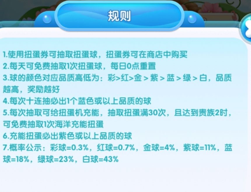 📝开抽扭蛋之前,小氪党可以充30元升到贵族2可以开启充能扭蛋,充能扭蛋可以免费抽一次稀有扭蛋!绝对划算!!