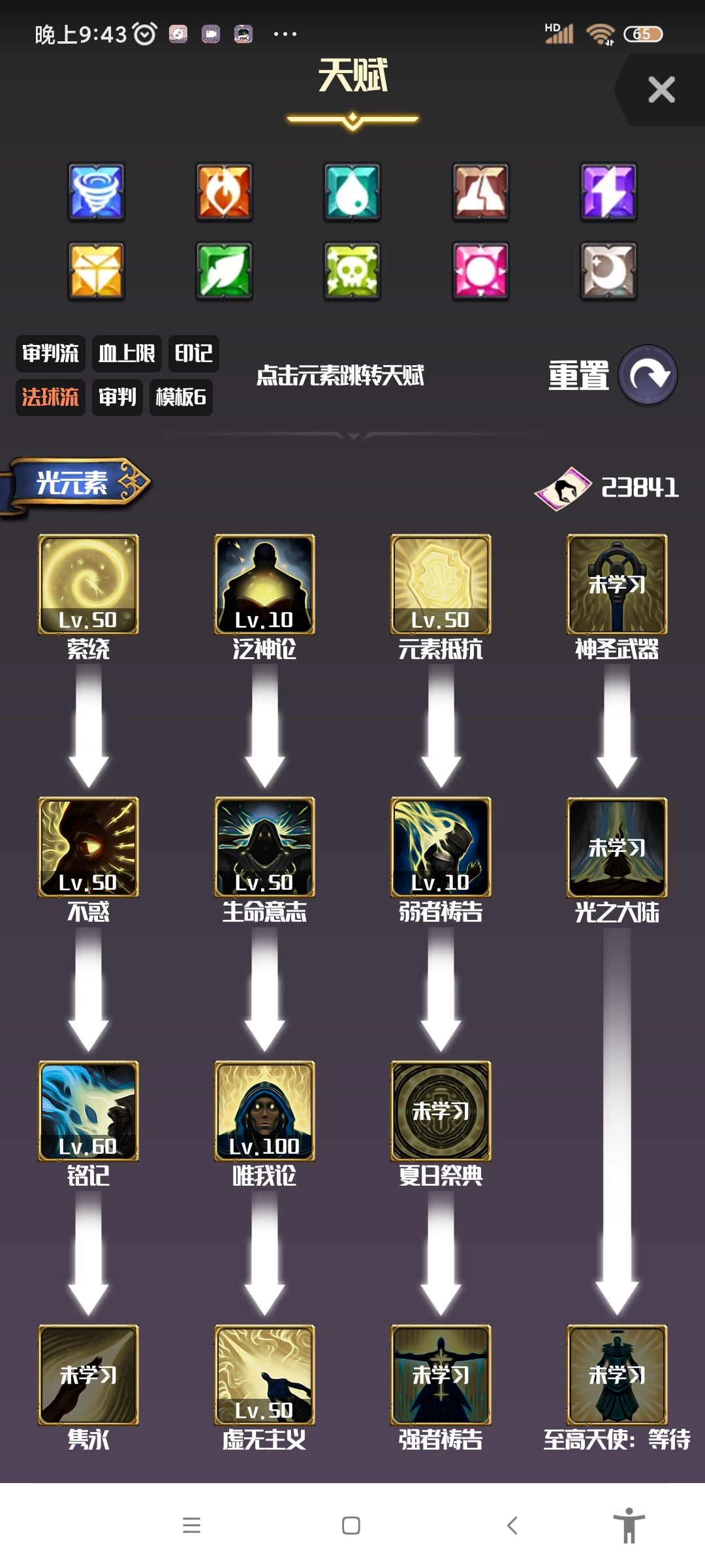 下图中100级优先点,50级等有多余天赋点了再点满,建议还是等150层左右把游侠一技能点的差不多了再启动审判流