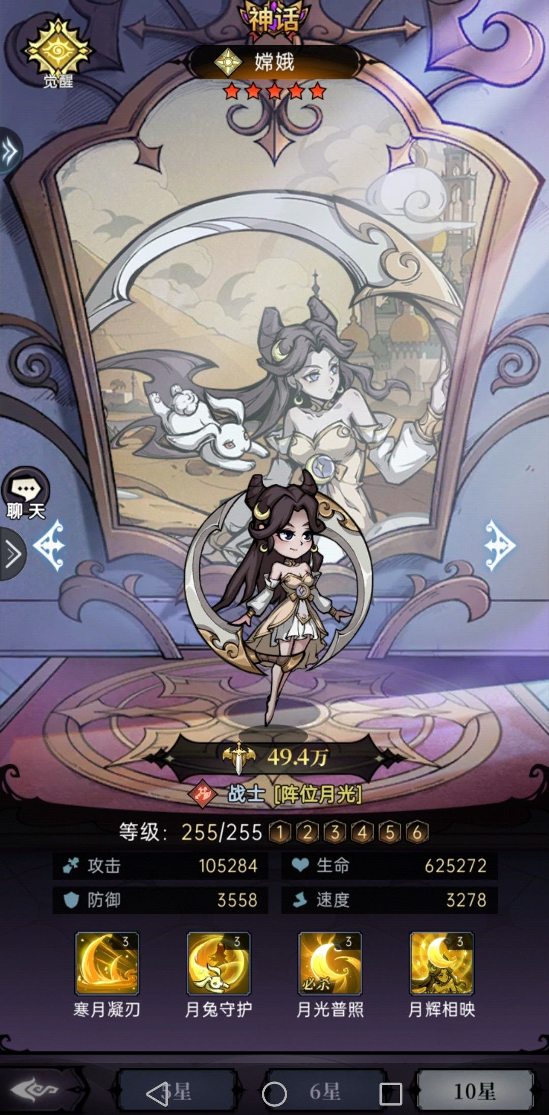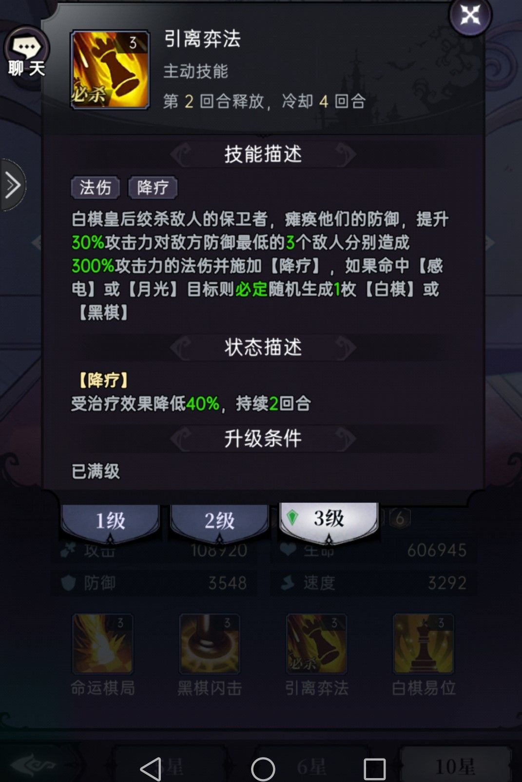 嫦娥的减防以及月光状态的施加,也充分利用队伍中的白棋皇后三技能。