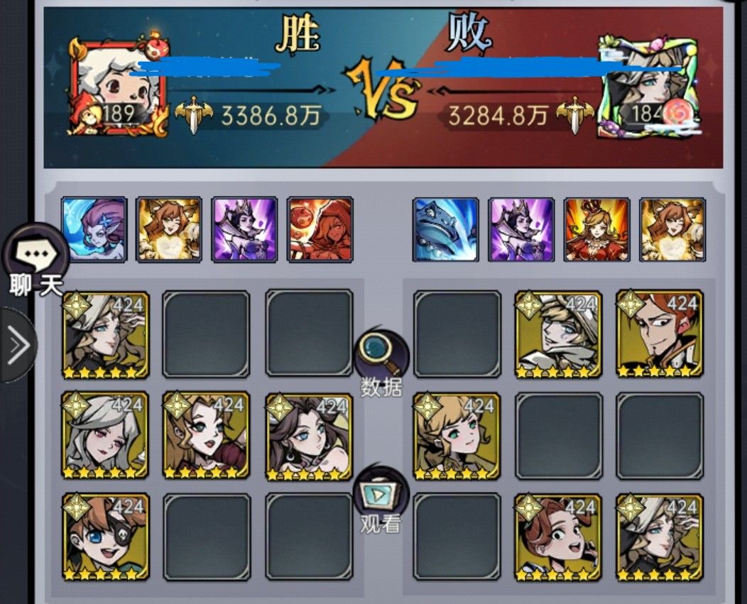 该套阵容充分发挥的嫦娥的技能优势,和队伍中的白棋皇后形成了技能配合。