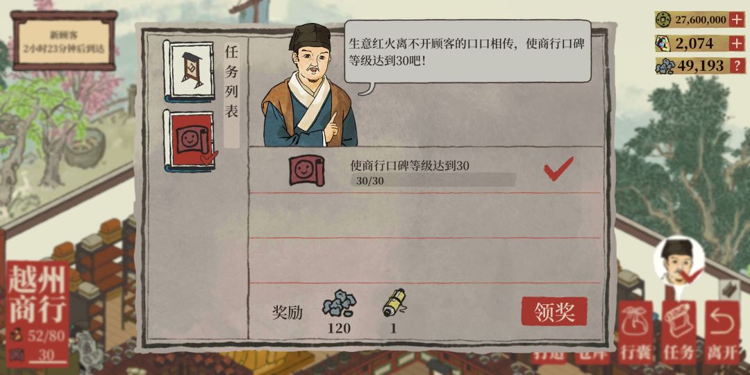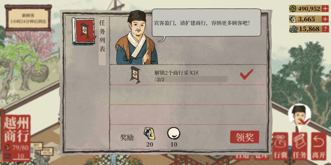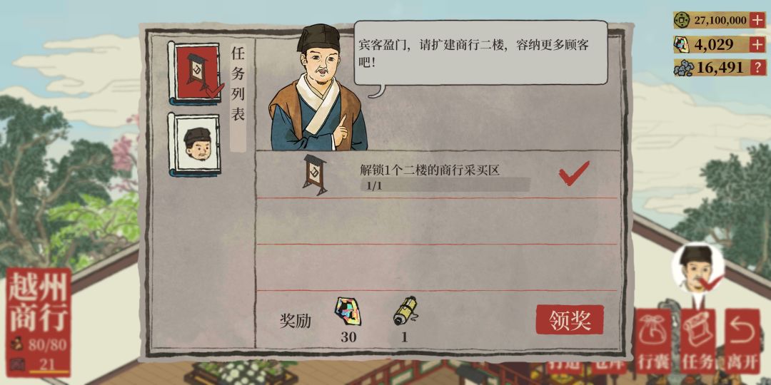 【越州商行】达到15级