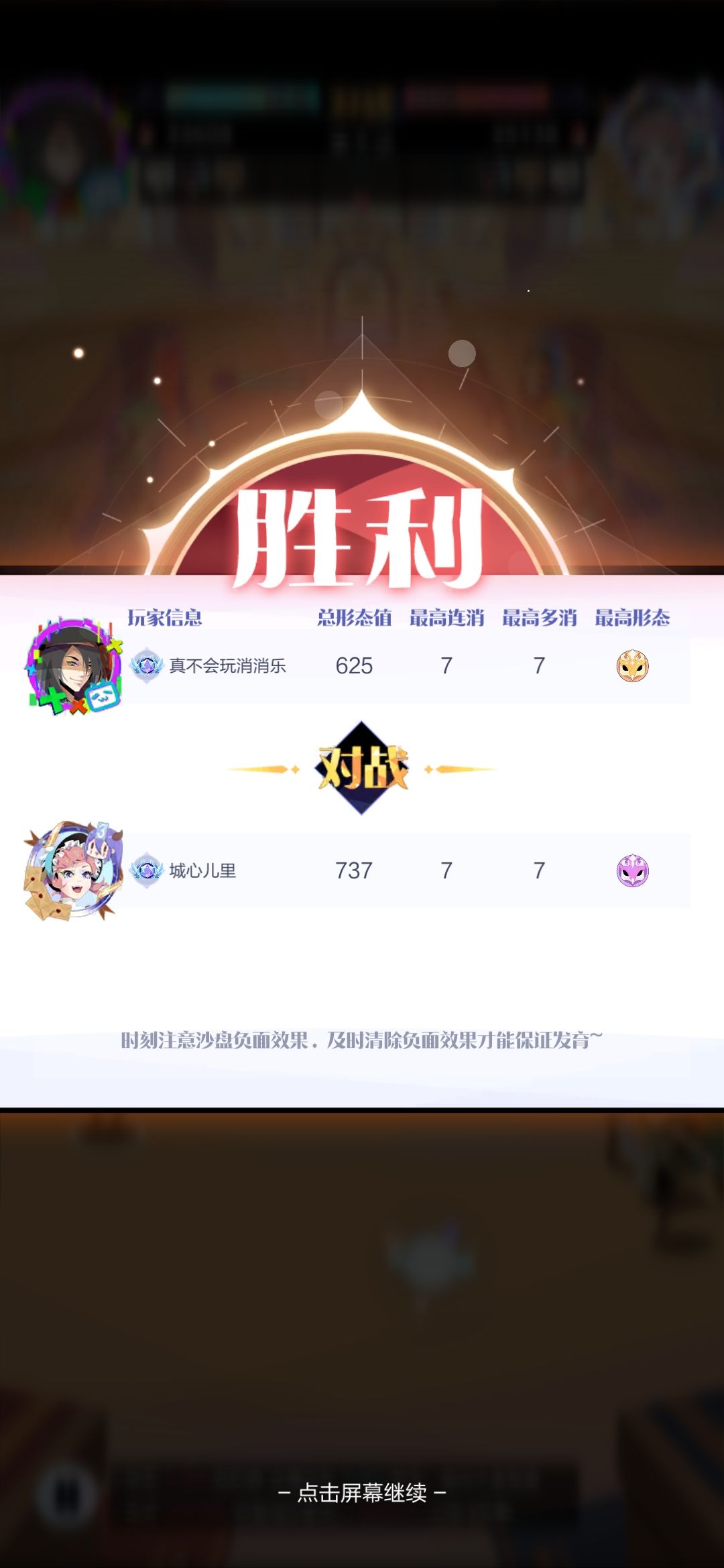 第一局,开局几步之后看场上形式憋哪一个紫,看下战场如果你感觉自己场上形式特别优(双消连消多)可以考虑吞一个不用留着憋紫的蓝,反之则全部用来憋紫。