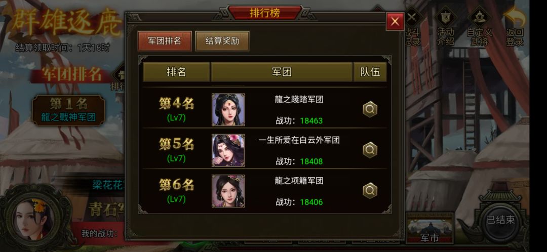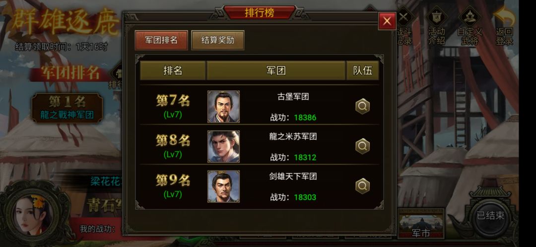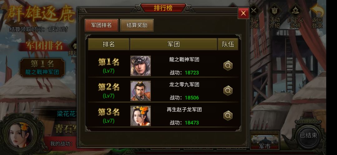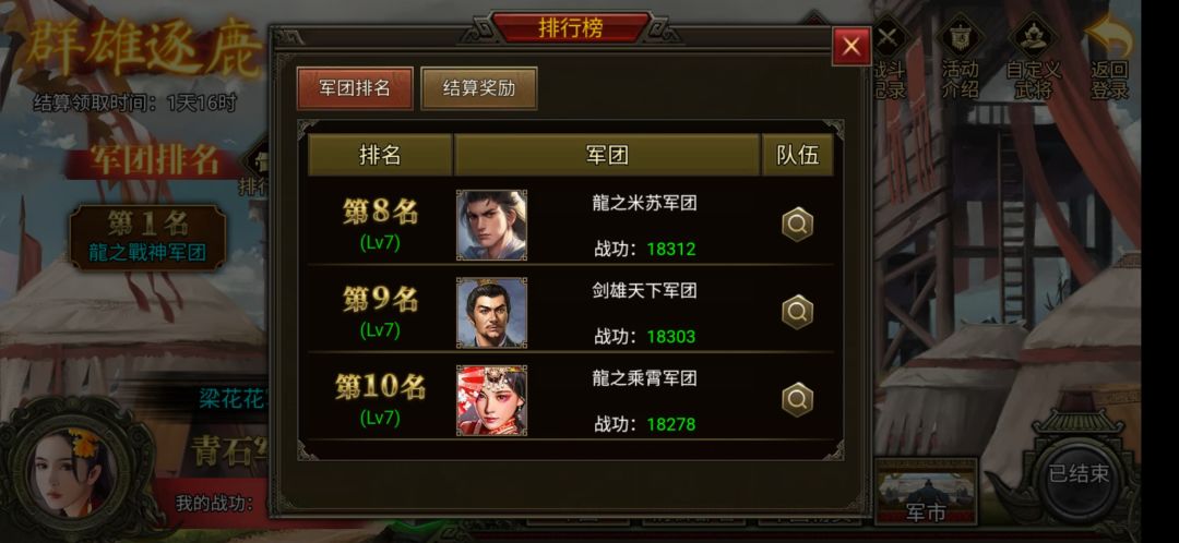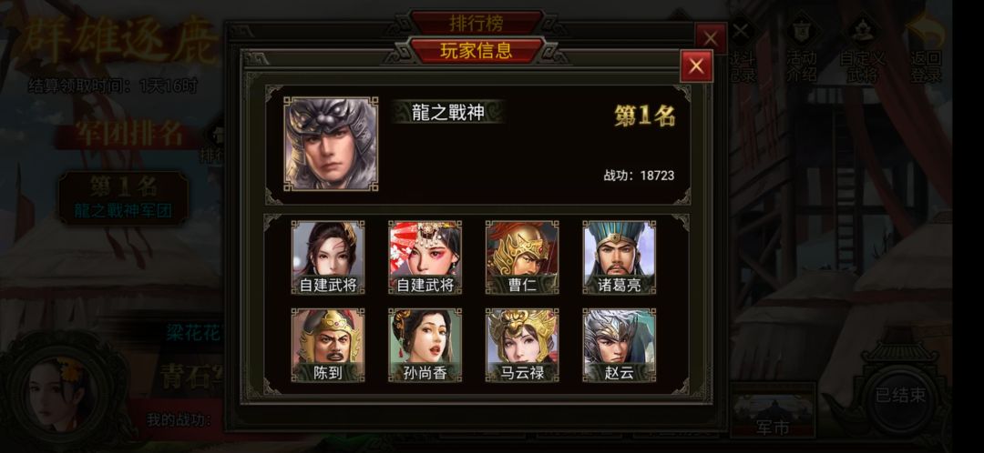宝刀未老,万胜之龍!第一名的军团仍旧是我们的老熟人龍之戰神军团!龍之戰神军团配备的武将是曹仁、诸葛亮、陈到、孙尚香、马云禄、赵云、高览、吕布和两位自建武将。