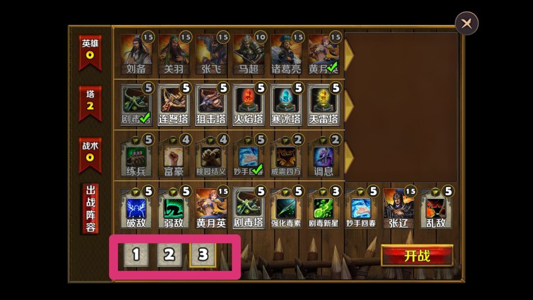 这个是可以选择3个页面,比较方便配置,不用重复选择武将配置,基本设置1、2、3各页配置固定好就可以,对玩家还是很大方便的。