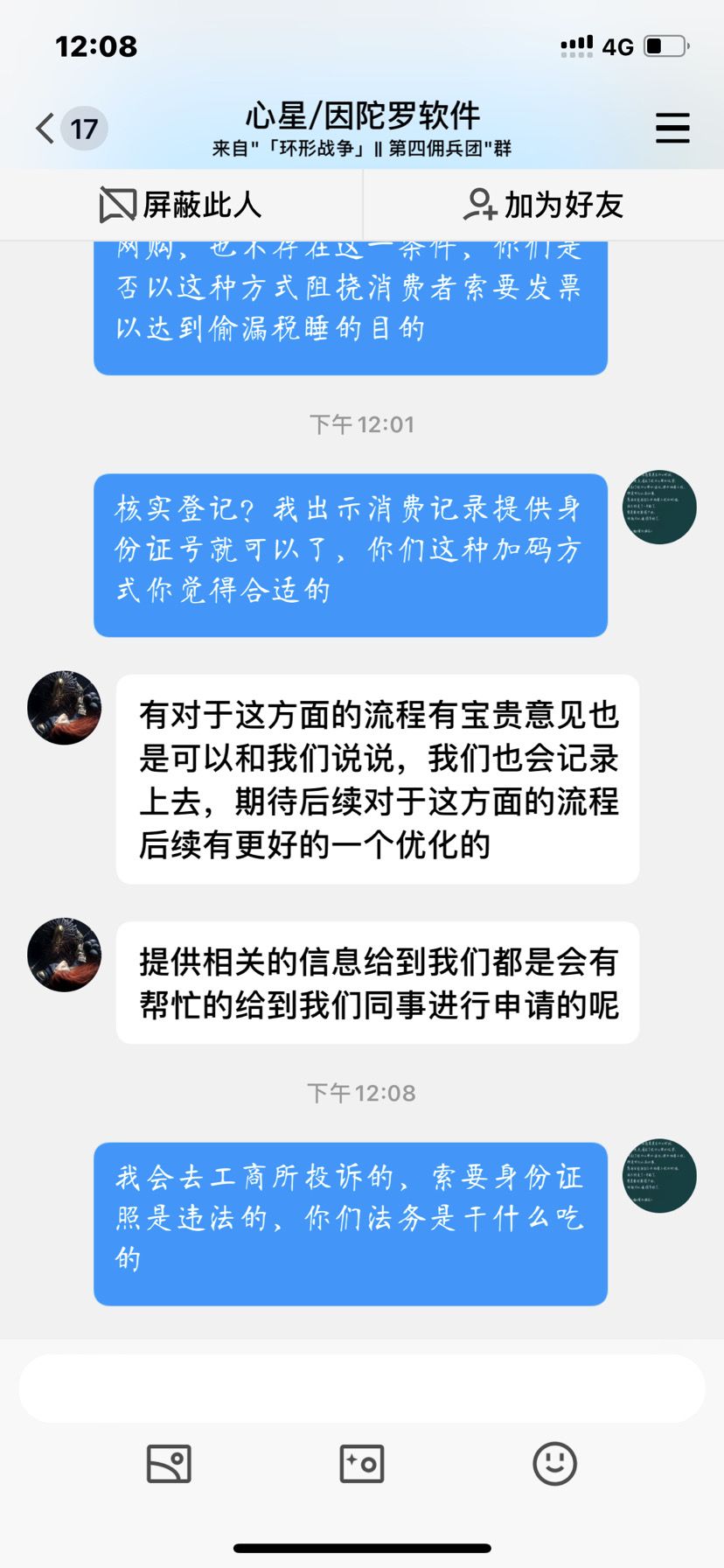 首先索要发票是消费者正常权益,他们加码设置门槛就是为了不让大家开发票,身份证照涉及到隐私,不能随便拍,他们不给开先投诉到工商,维权到底,投诉到工商,消协,工信办