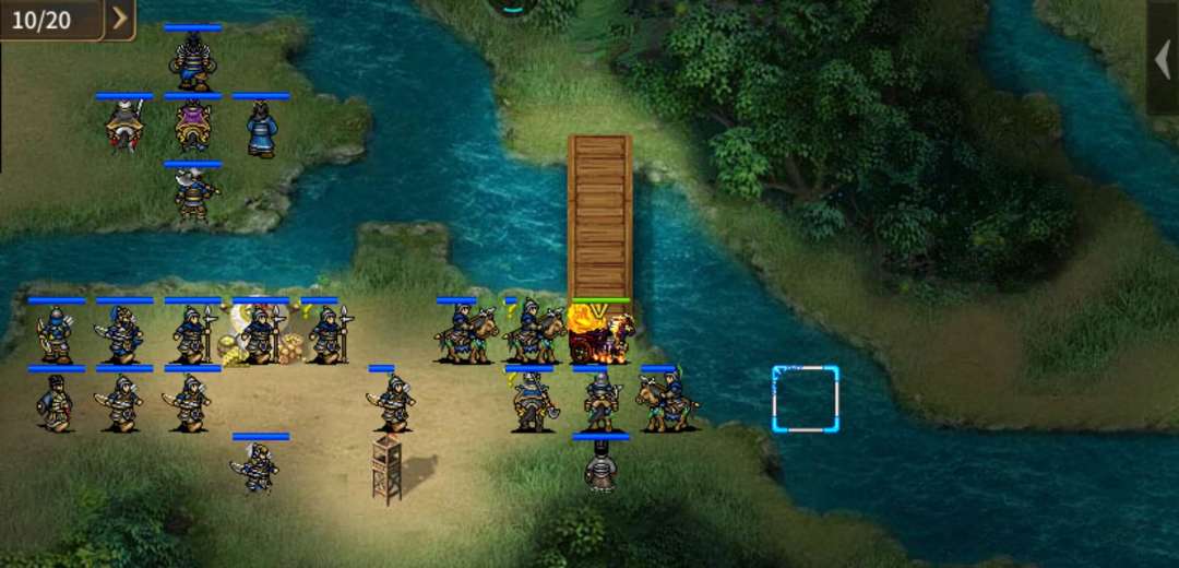 3.汇合后李明下去引张辽出现,边打边退至桥梁(25,5)附近,算好法师距离。