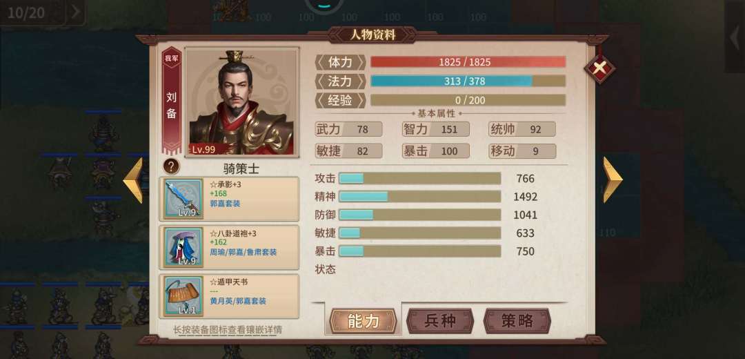 1. 李明,霸刀,黄金甲,牙齿+2 曹操魂。 主力输出,打有名字的武将和无名弓手,躲开法师和无反击属性骑兵。