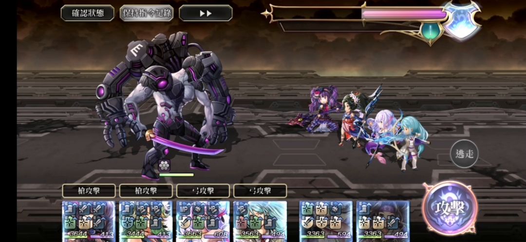 注意BOSS身上还有反击BUFF,这个回合正常来讲是不建议你输出的,因为你满血状态输出会被反击,除非防护能力做到极致(比如伊斯卡es等盾角),否则会被破掉90%以下的血,然后三下技能会减员;