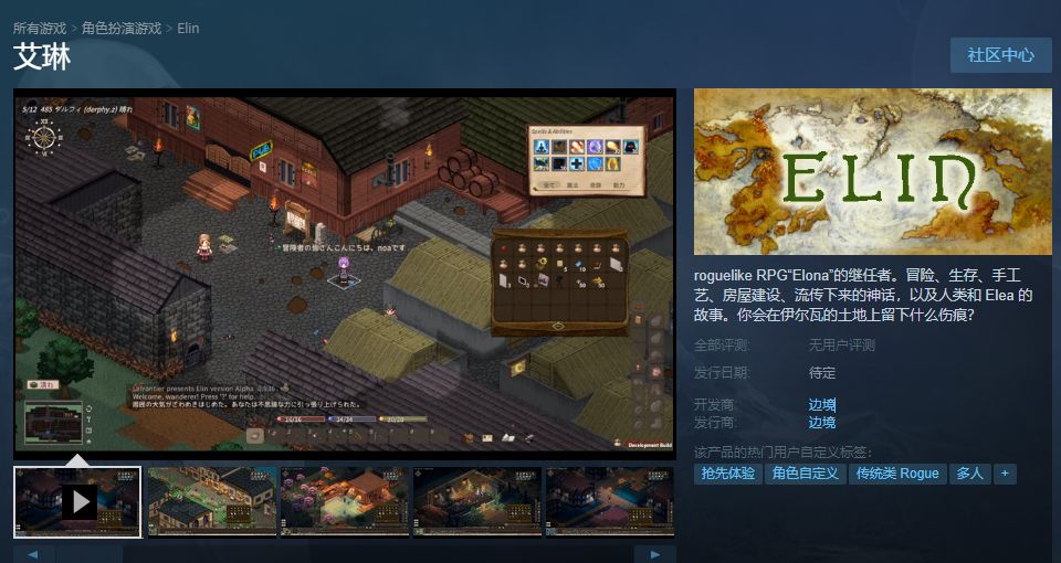 经典免费RPG游戏《伊洛纳(Elona)》的正统续作《Elin》已经上线Steam商店,最快将在年底以抢先体验版的形式发售。