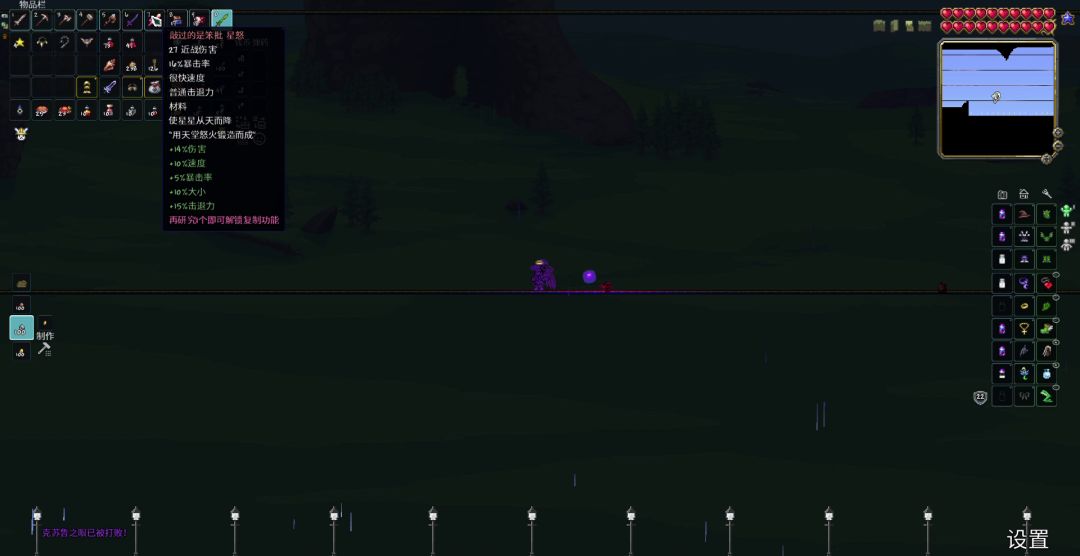 星怒(加强之前是肉前战士亲爹,加强后不仅解决了之前不能穿平台的问题,还额外增加了25%星星速度,星星弹速受近战攻速影响,冷却时间受不受影响我反正是没测出来,听说是受影响的)补档,1448星怒星星伤害由2.0倍削弱至1.5倍,不过加了几点面板,总体而言削弱