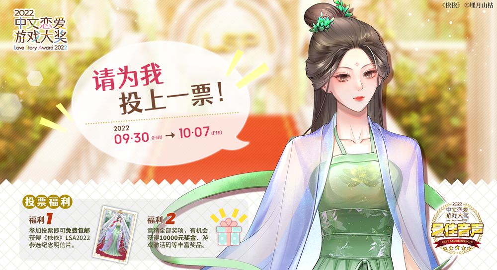 免费获取角色纪念卡片!《依依》正在参加“2022中文恋爱游戏大奖” 🏅最佳音声 的评选活动,请为“依依”投票~