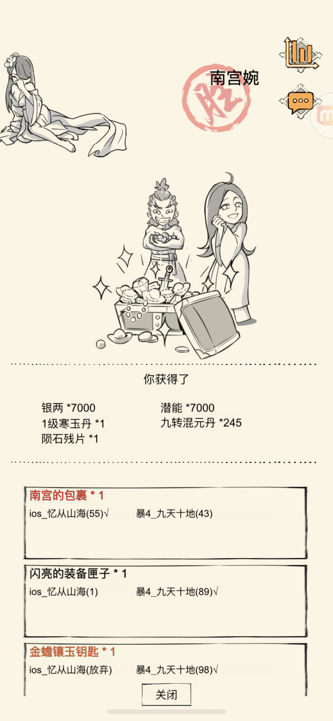 今天还出了南宫包裹,我ROLL到了,他没有任何嫉妒的表现,甚至问都没问我一下有没有出神器,以前的队友看我ROLL到包裹就追着我问出了没,听到没出才能安心。