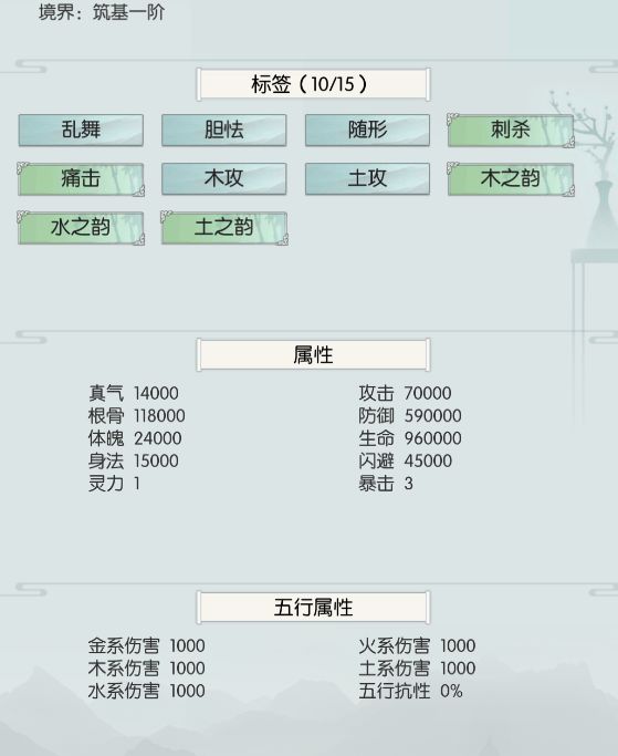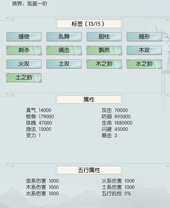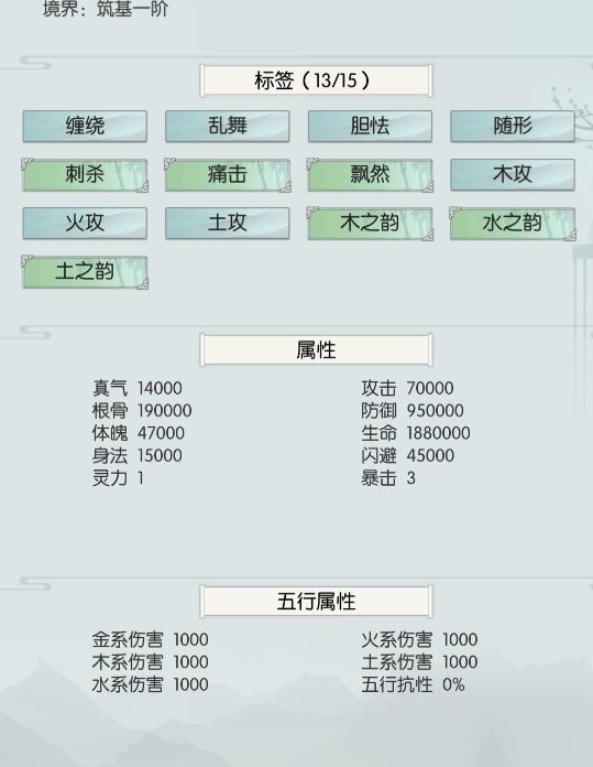 词缀还行不算太恐怖,买3体魄,13根骨开杀。最后补5个根骨杀BOSS。