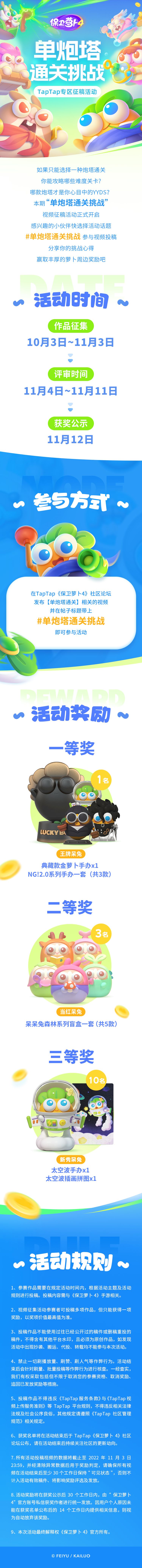 《保卫萝卜4》“单炮塔通关挑战”征稿活动正式开启,感兴趣的小伙伴快参与视频投稿,分享你的挑战心得,赢取丰厚的萝卜周边奖励吧!