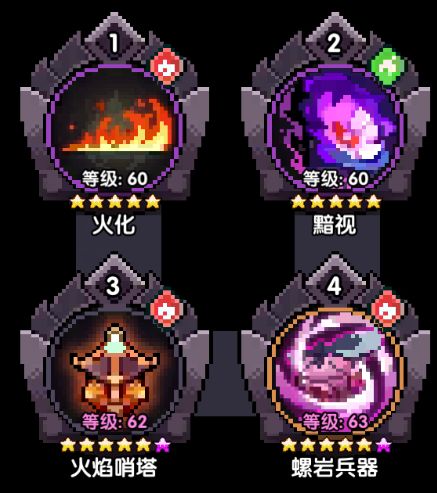 防具魂卡:堕落天使-昔拉;深渊猎人-龙息;烈焰牛魔;火纹绵羊(左上,左中,左下,右下)