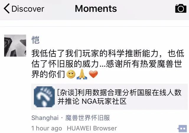 然而2019年8月底怀旧服上线后,国服玩家人数迅速突破10万,并且还有数倍于此的玩家正在排队。曾有NGA论坛用户通过对各种数据分析汇总,估算出魔兽怀旧服“开服三天后在线人数达百万”——这个数字后来得到官方人员的认可。