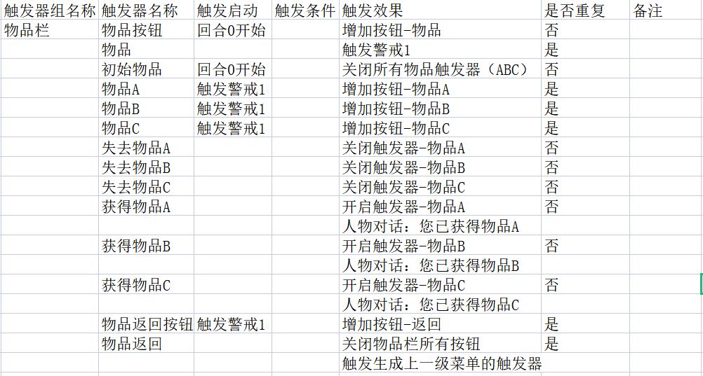 注意,在新版本的触发器里面,按钮的触发和弹出选项/触发触发器是一样的,在触发某个触发器的时候,跳过原有触发器的触发启动,直接判断触发条件,执行触发效果。