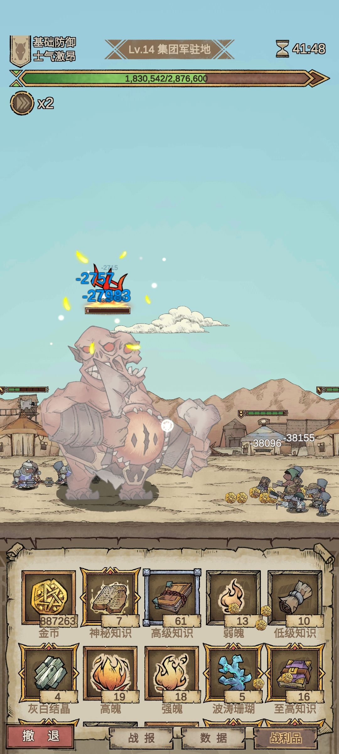 龙爪,贪婪就不说了,13位建议上去送,24位带恶魔,因为龙爪需要伤害高才行,恶魔伤害面板没见过比它攻击高的,当然现在变异体好像更牛逼,推荐都用恶魔那个手里两武器或者没有武器那个,近战的,这种可以快速清理脚下的小兵,一砸一片,其他的角色试过,但是容易漏怪或者攻速不够。关于士气,推荐卡在士气高涨的阶段打,那么要求13位死的越快越好,房子推多了,士气到了士气激昂就有点扛不住(我恶魔评分在20_26万左右,评分几百万当我没说),我试了几次,确实十分钟左右就死了,当然金钱相对于士气高涨阶段单位时间来的多一些,角色左边怪多的时候撤退拉扯一下让怪兽清一下,快要打完的时候在最后一个或者两个怪血量都很低的时候直接撤退,下一波拉上去送。