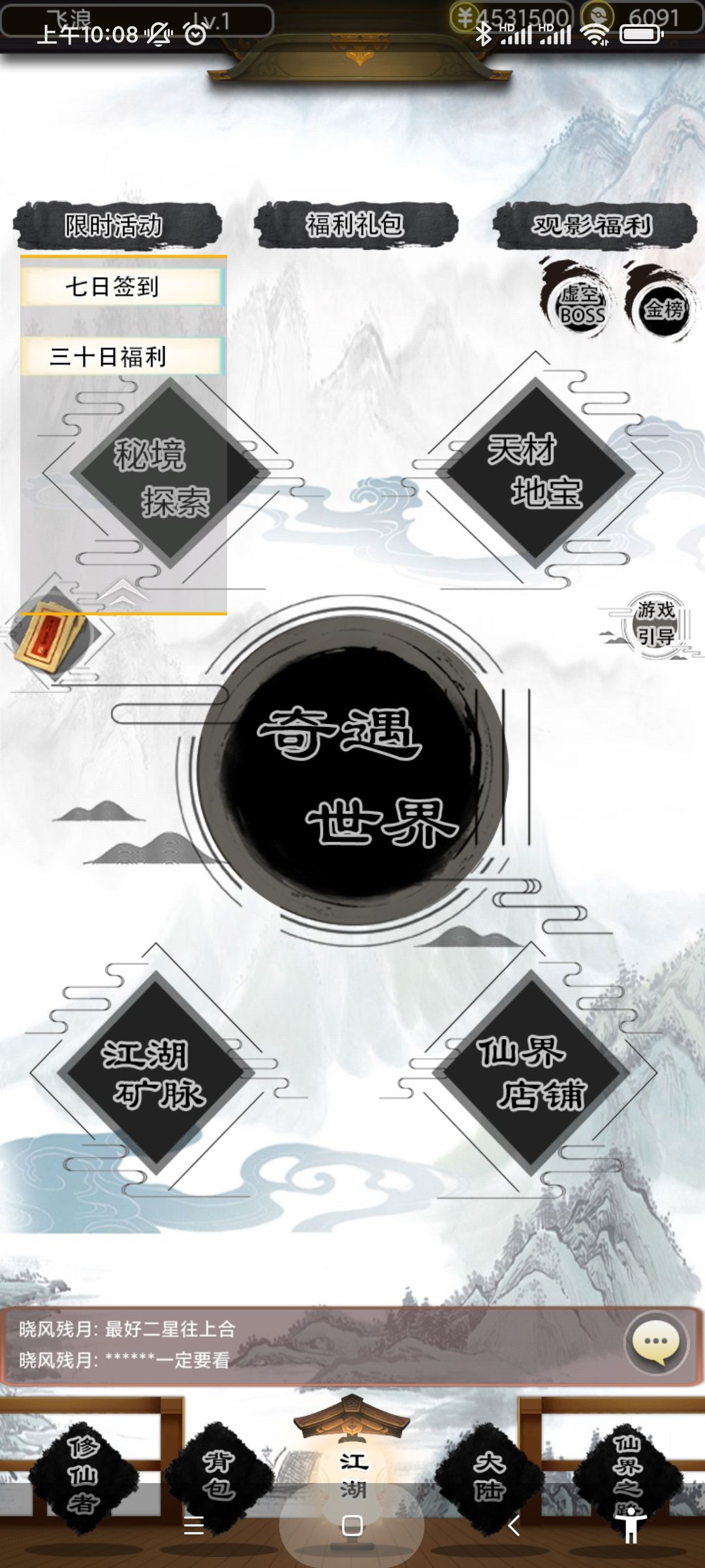 4、虚空BOSS:人多的区目前可以打练虚BOSS,没赶上大家一起玩的时候可以自己单刷化神BOSS。观影币5多刷一次。如果每次都刷练虚期以上的BOSS的话,是比观影币买1千万金币划算的。