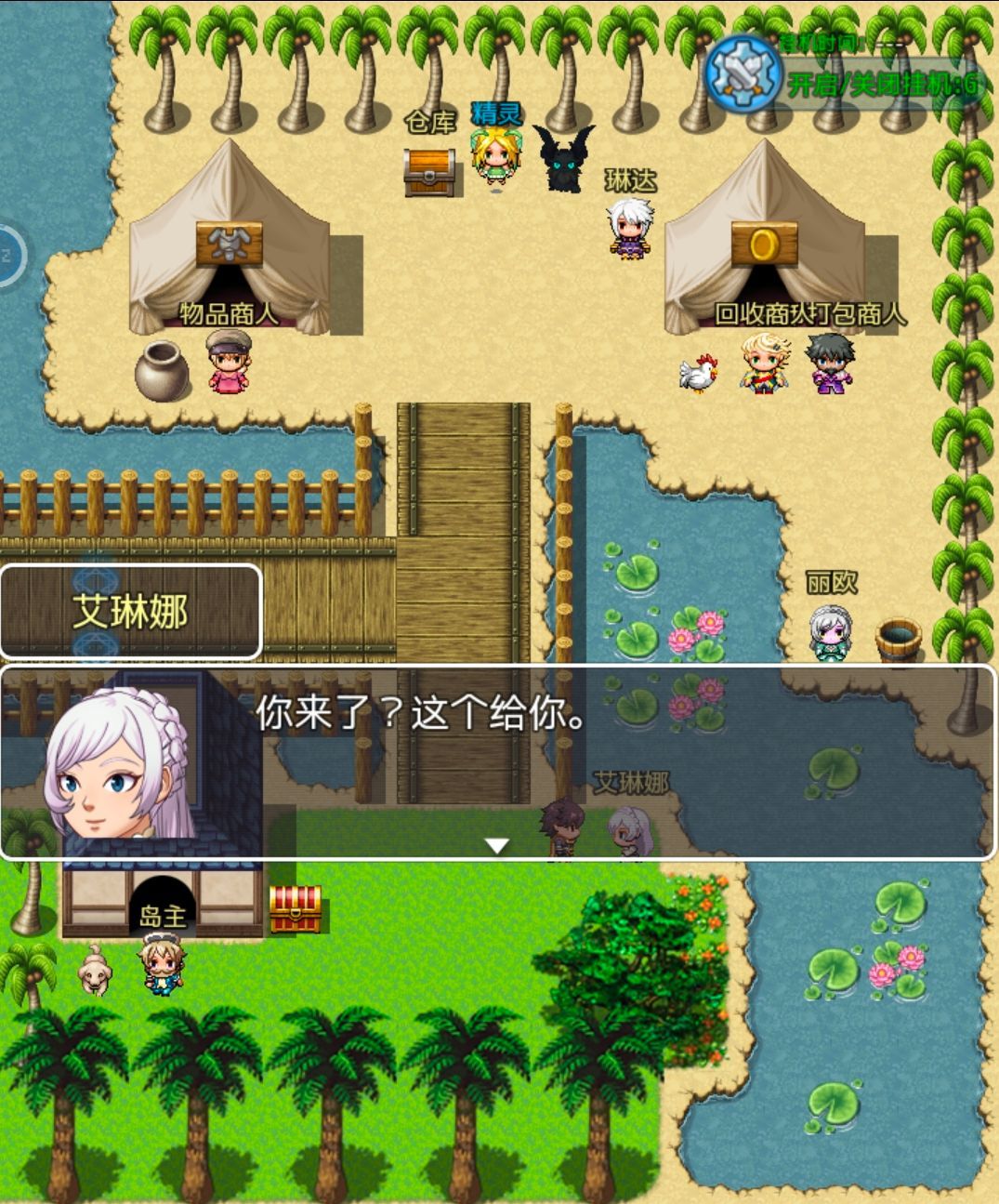 2,新手村找NPC艾琳娜领取开局物资,NPC岛主旁宝箱需要对游戏做出真实评价后截图找作者领取密码