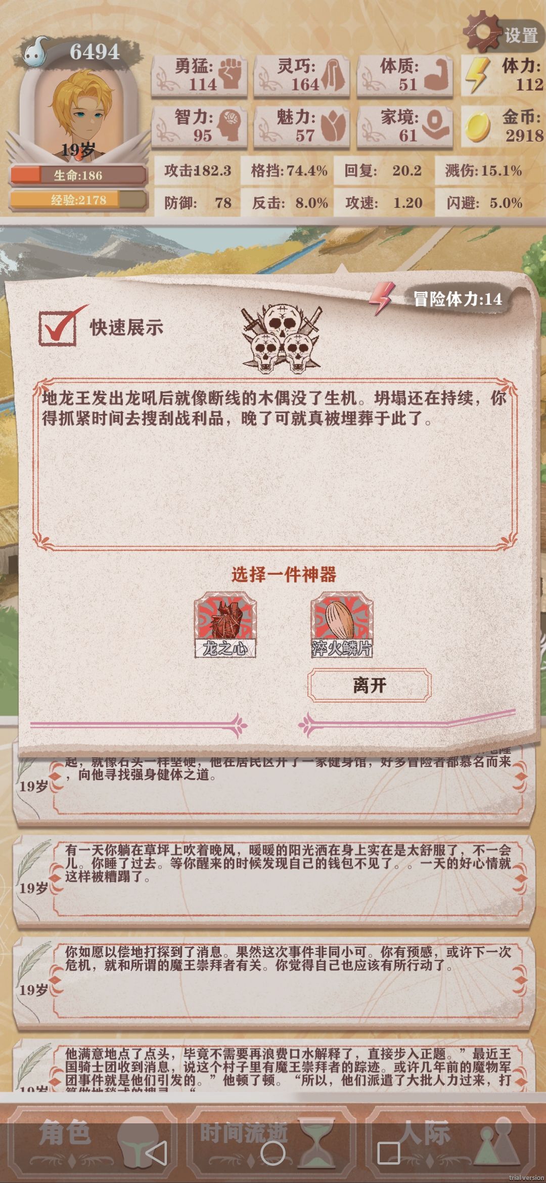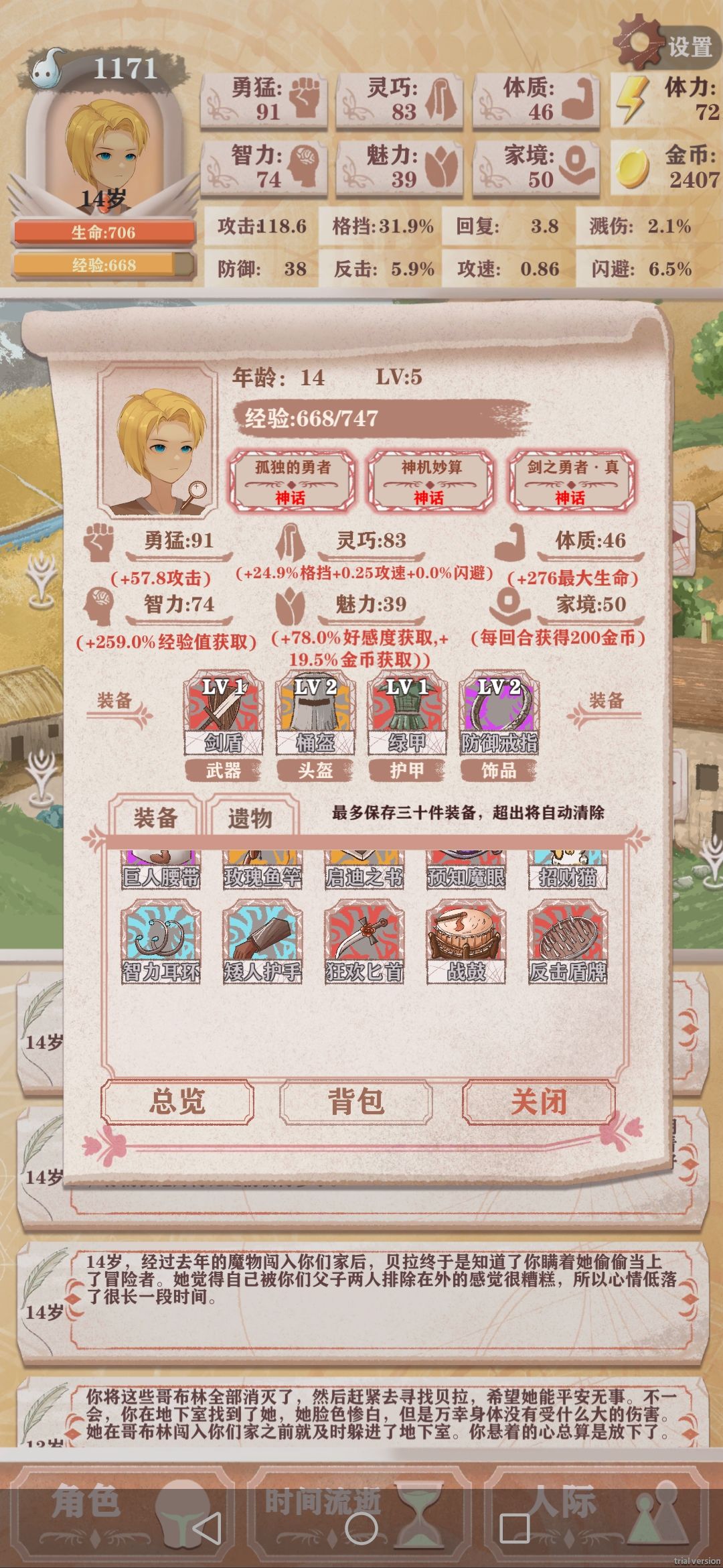 14岁看个广告拿了战鼓和狂欢匕首,运气好弃甲技能出得早已经三级,哥布林图所有小怪基本两刀砍倒。装备还是没捡到能换的。。