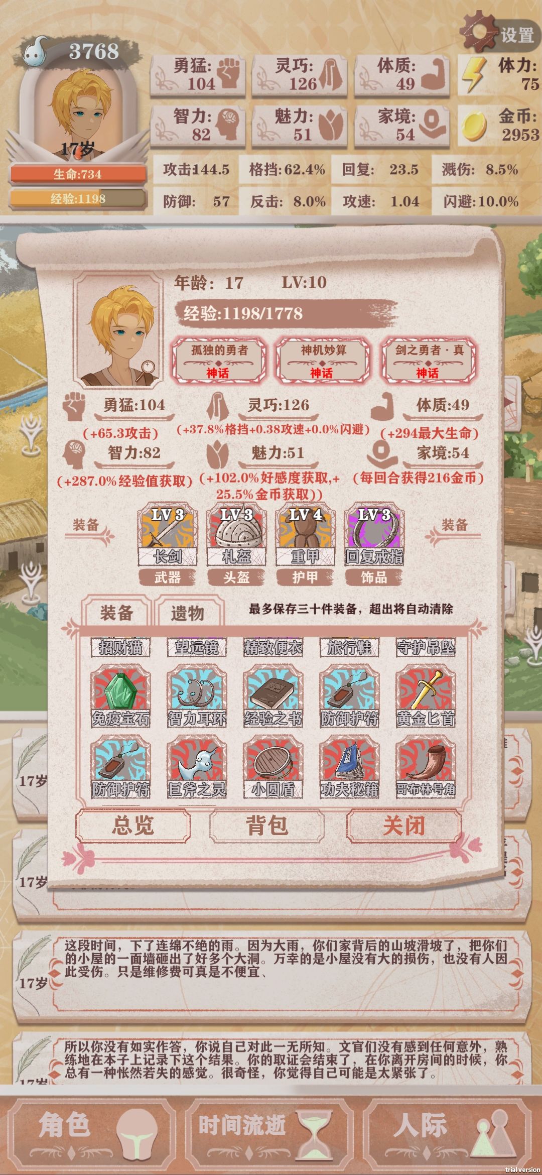 商人买了两件遗物,这档前期老妈挺良心没总出去浪,金币还算富裕。就是没出羽毛事件副本捡装备脸黑。