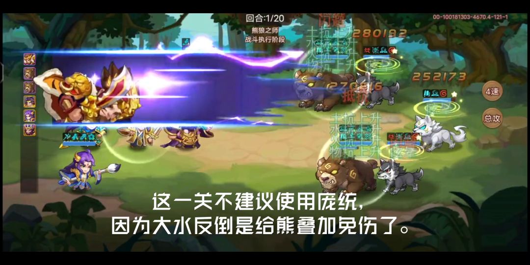 1,两只熊,这一关算是比较难过的,主要是因为两只熊的回血和伤害减免叠加实在是过于变态了,这一关不建议使用庞统(大水反倒给🐻叠免伤了)建议等级高一些的玩家用诸葛,孙坚等武将试一试,如果前两回合都未命中,再用董卓放技能加上招降计慢慢磨。