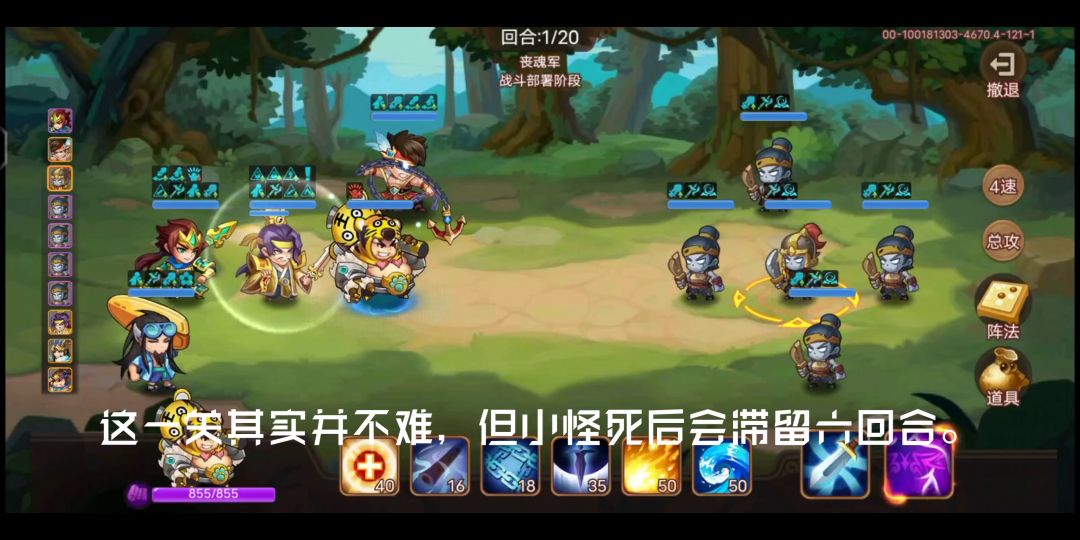 2,这一关其实并不难,但小怪死后会滞留六回合,并且死后每回合对我方进行百分比攻击。建议等级高一些的玩家用甘宁加盾,为我方挡伤害,加上张宝,许褚硬抗,这一组合等等级高的话有80%以上的几率过,哪怕几回合后有我方武将阵亡,估计许褚的被动也叠的差不多了;而等级低一些的玩家可以选择一次杀1~2个小兵,这样对方造成的伤害会减少不少。(最开始我的打法)
