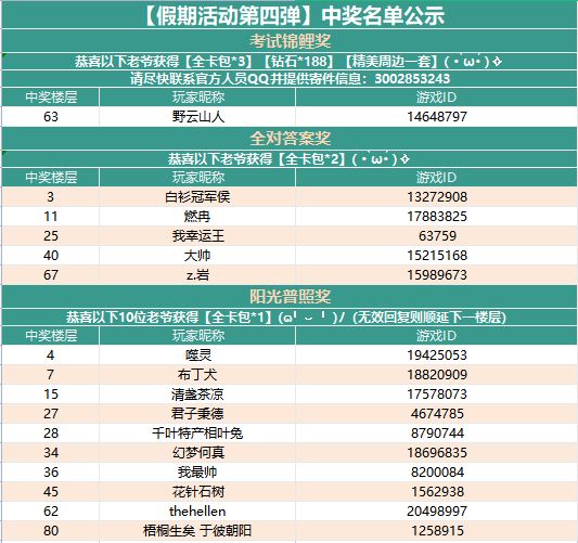 中了实物周边的老爷请添加官方人员QQ:3002853243,并附上您的昵称、地址及联系方式,以便我们尽快发奖~再次感谢!