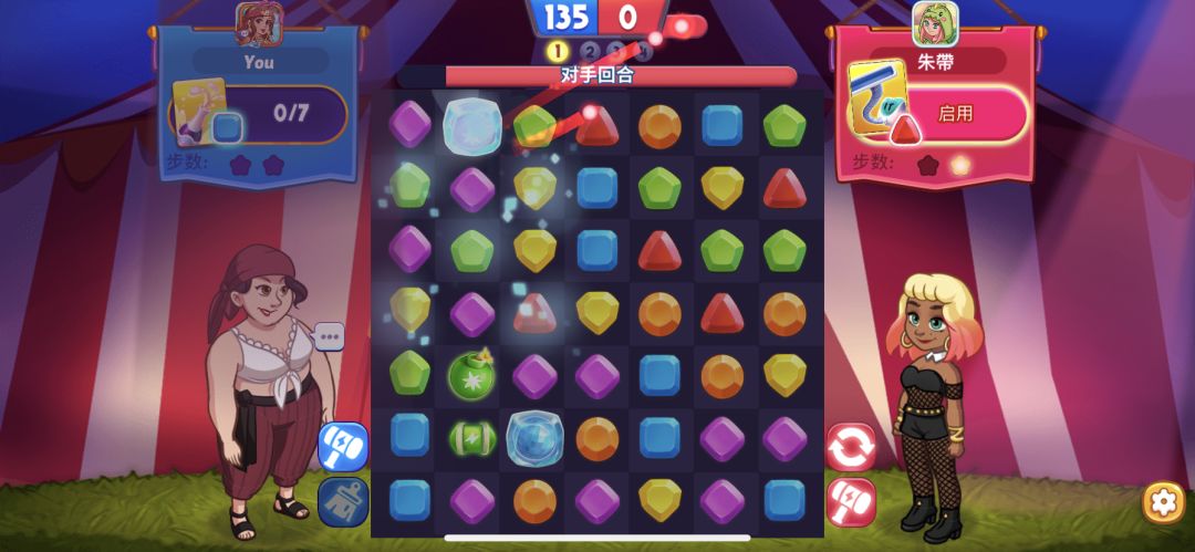 P7.游戏一人一回合制,一回合2步,一次性消除4个及以上同色的会增加一步,上面的进度条是一回合的时间 在有限的时间内尽可能的拿到更高的分数就能获胜啦
