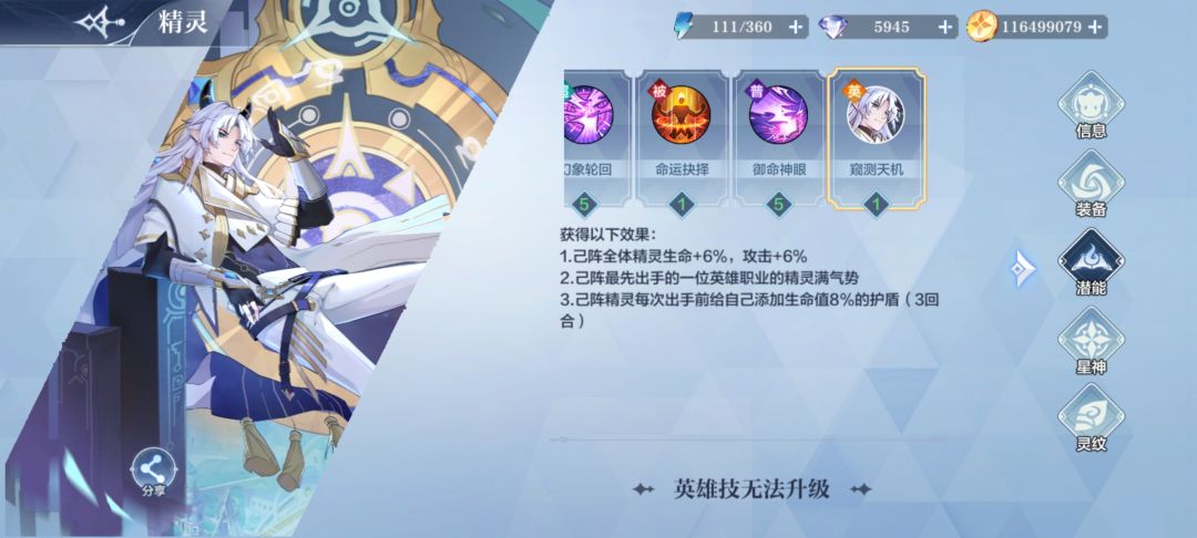 英雄技:以王序为核心,上阵包括王序的五或者以上的水系或者空系精灵就可以开启英雄技,开局王序与最靠前的一位其他精灵获得100点气势,己阵精灵释放超杀后,下次受到伤害降低15%。优势是你有气吞的话可以开局放大,打光暗可以打出很好的优势,你可以直接三天一鸣配极龙开局就能让极80点通灵值,让极快速一打六;劣势是阵容太死了,联动性也不是很强,没有高强度的水系或者空系精灵只能被对面蹂躏。