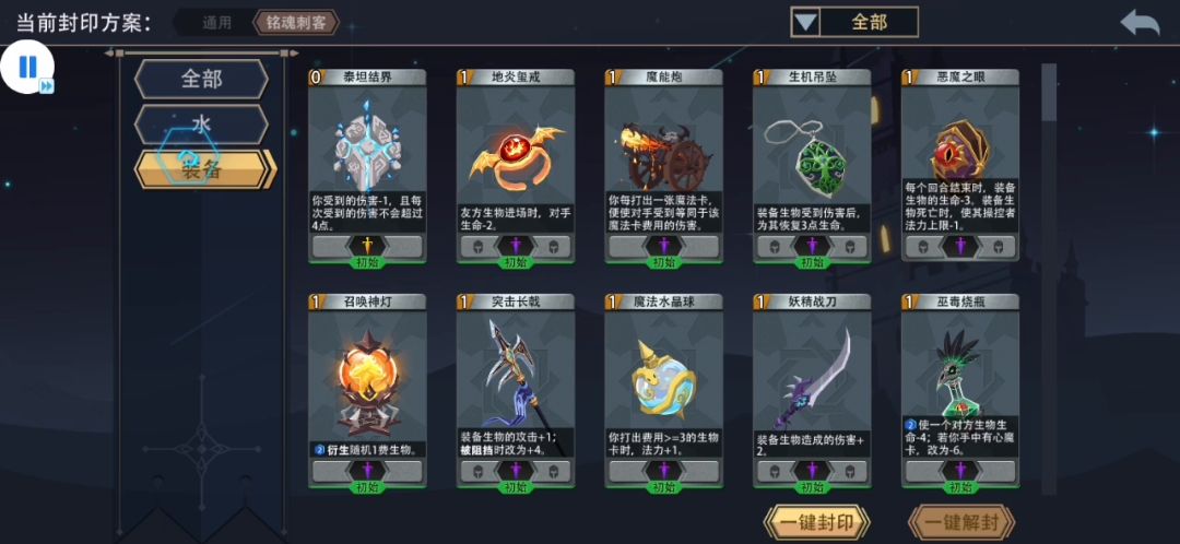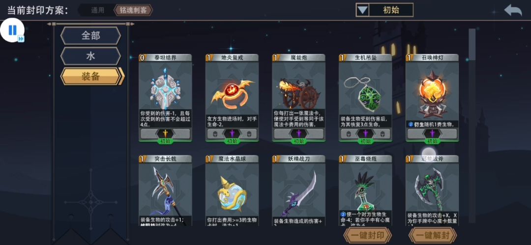 装备卡:能量法球(初始,建议升级,通用),魔能炮/机关弩(初始,前者无需升级后者建议升级,通用刮痧),魔法水晶球(初始,无需升级,许多可用生物卡3费以上,有了卡组更丝滑没有影响也不大)