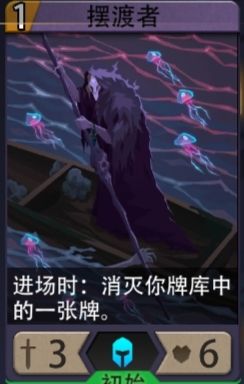 摆渡人+骨犬是暗系通用铺场组合,固有一张牌即可打出1费铺3/6+5/11(升级后)。全系最强前期铺场,至少可以保证你前三回合的场面压制。就算没有骨犬,也能配合暗之源灵定向检索上手,或者过滤掉牌库中的废牌,打到压缩牌库的目的。