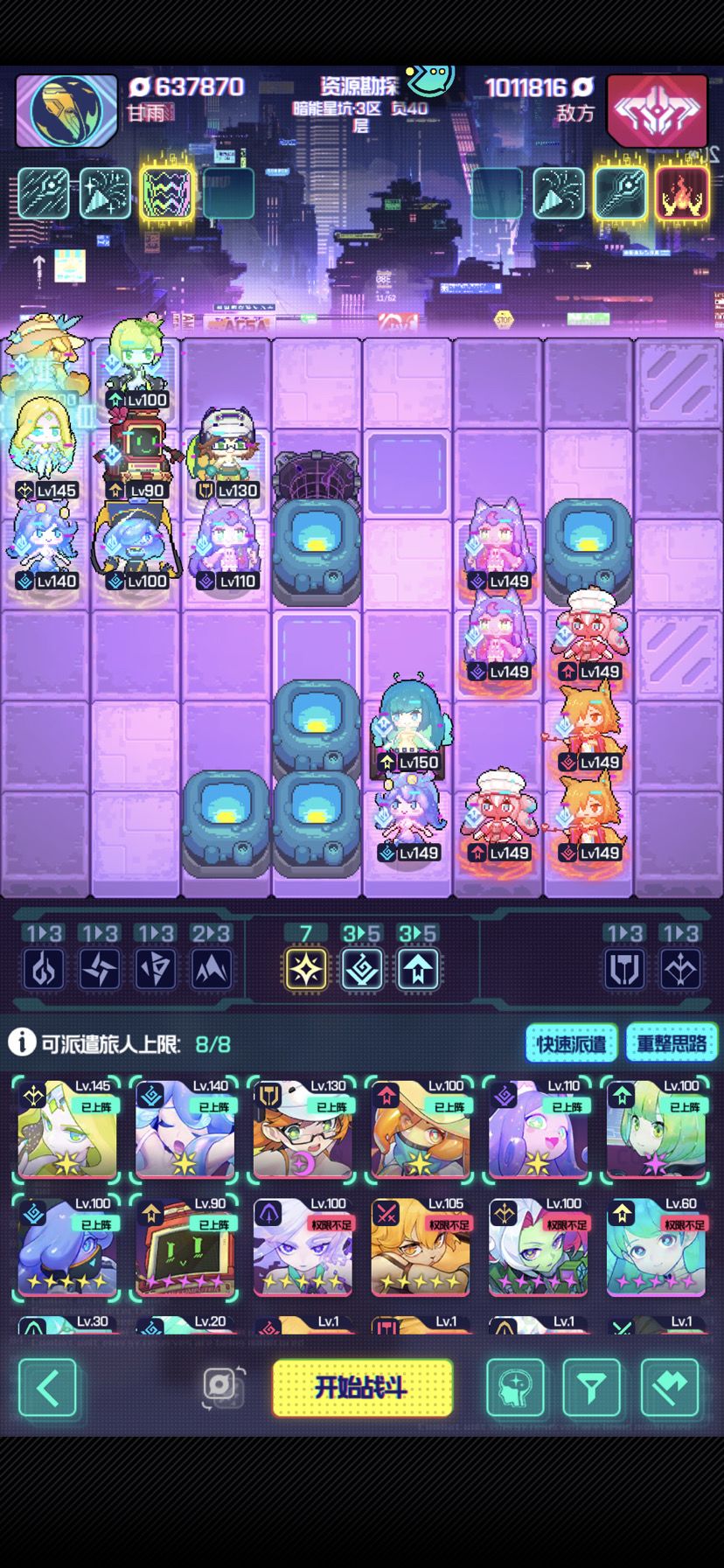 卡13-12以及13-22,过了便是坦途,14层白给。全程光队,凑3法3学;攻坚战(没错说的就是你虚,怎么在我方阵营这么怂炮)视情况换下火基小电视,上土弓小狮子,阵容大致如下: