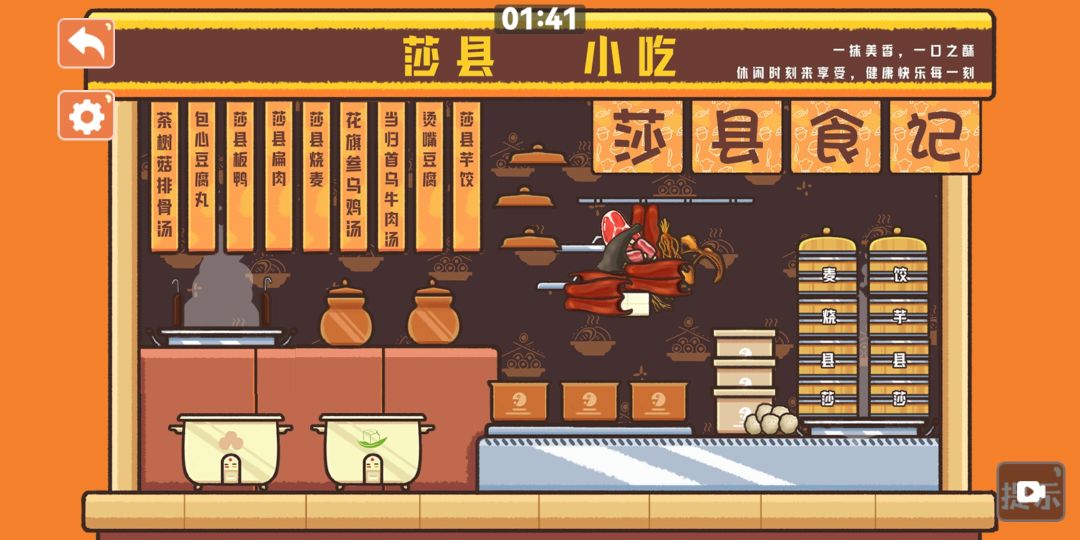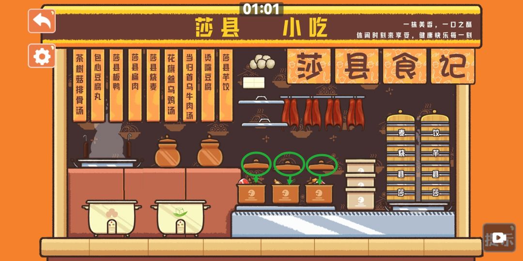 “莎县小吃”一关,先将物品等等摆放好。