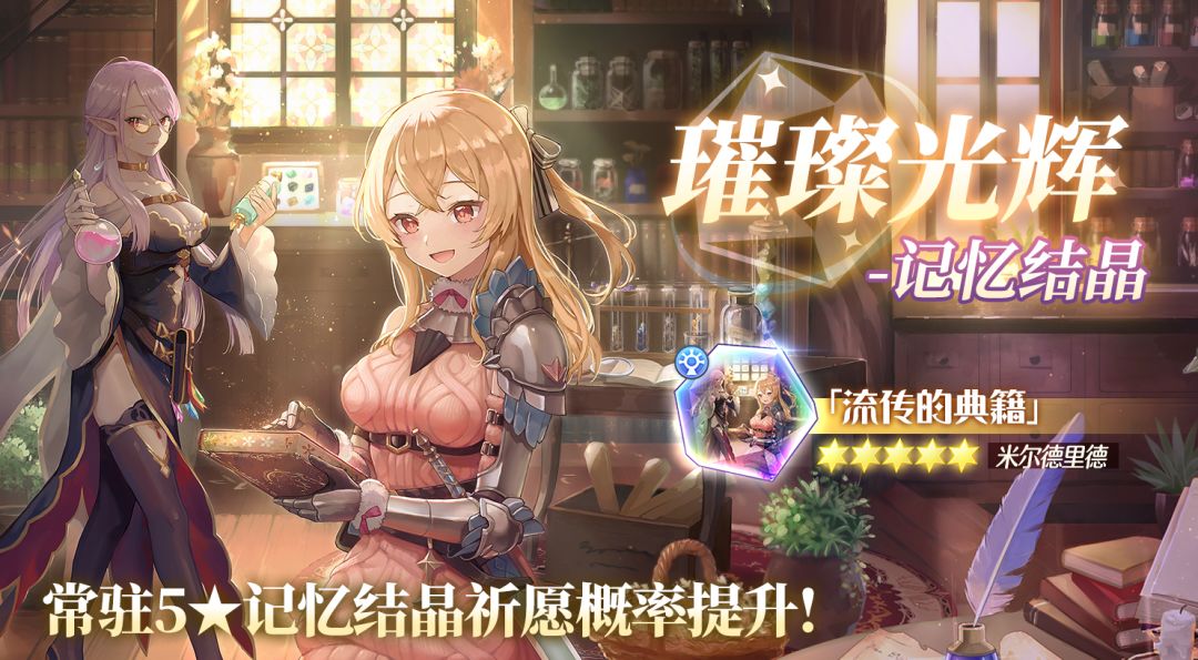「璀璨光辉-记忆结晶」常驻结晶祈愿即将开启,活动期间内,常驻5★记忆结晶「流传的典籍」的祈愿获取概率会大幅提高!