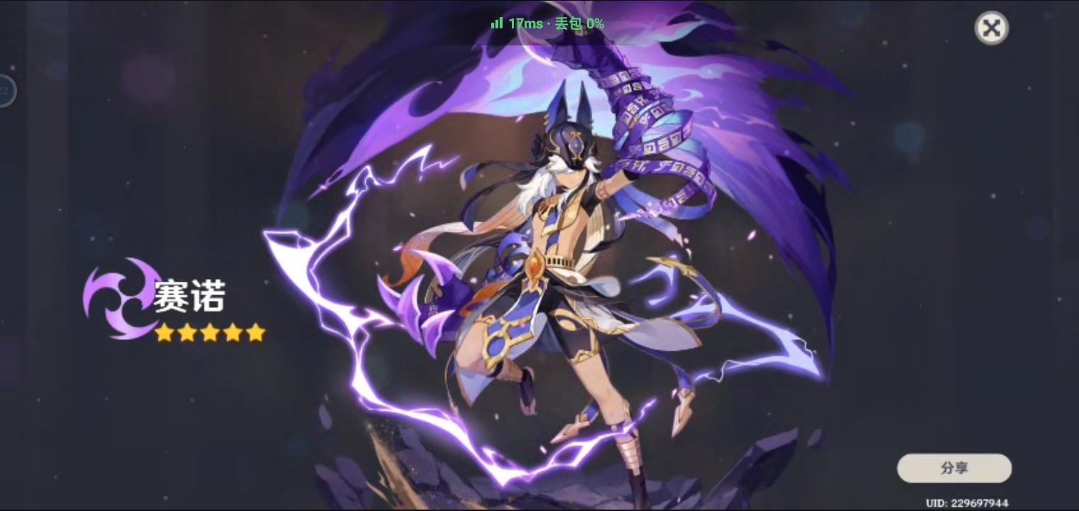 飞雷,《莫娜(抽的常驻池)》,赛诺,单发出的。