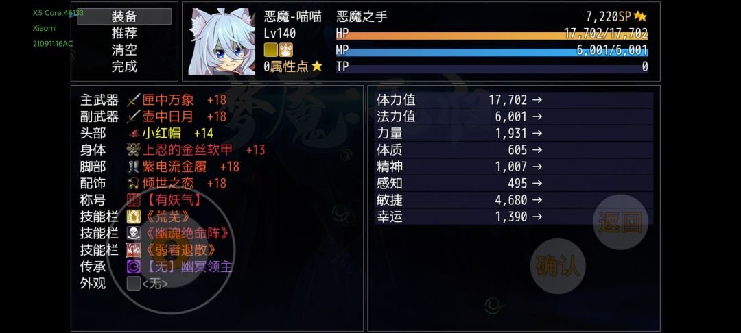 喵喵是常规敏捷套,为了快速清掉第一波兵所以敏捷尽量高先手。技能荒芜和幽冥绝魂阵必备(压低杨戬回血,尤其是四阶!)刻印打满2%敏捷,宝石推荐全攻心或者五蕴。