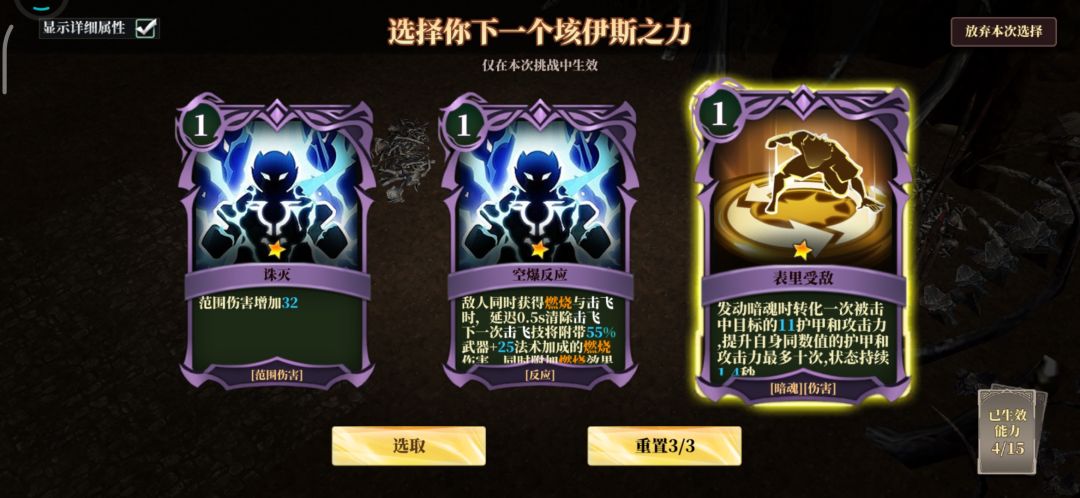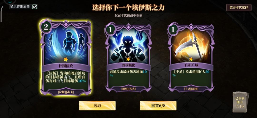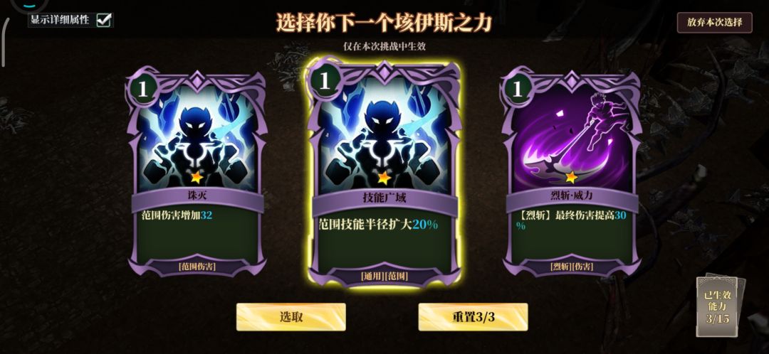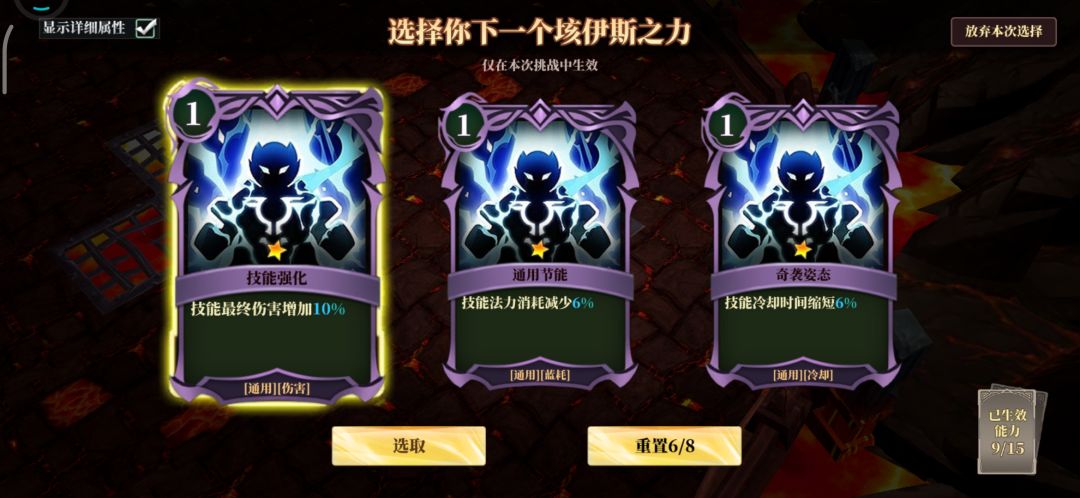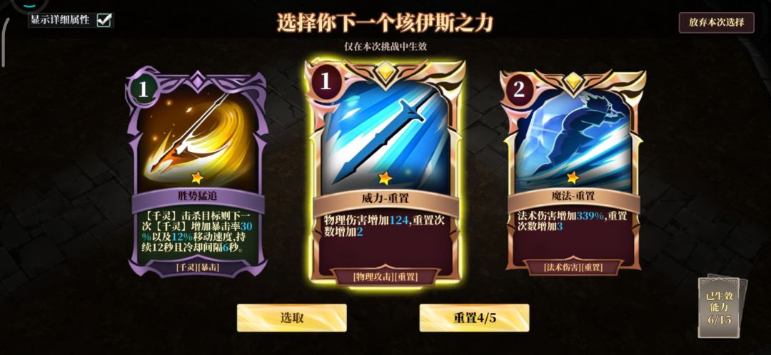 物理重置,魔法重置看到就拿,魔法重置尽量少升级,后期满了要顶掉。