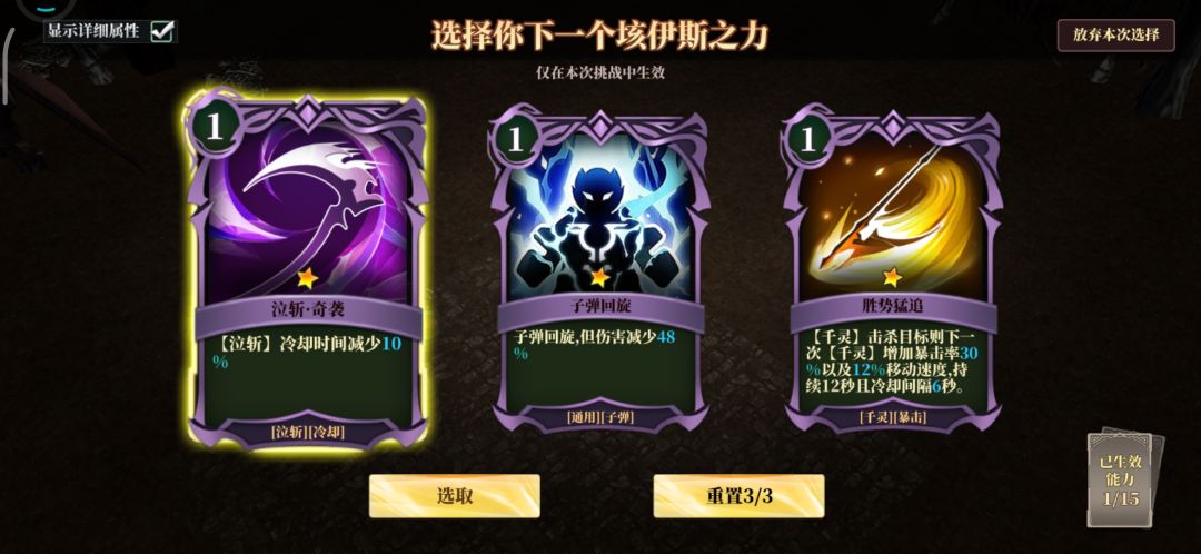 大概玩镰刀的都知道,但还是啰嗦一句,气行肠道不要选,指向性不好用,输出也有延时,我反正用不习惯,绕道走,不小心选错了,记得顶掉